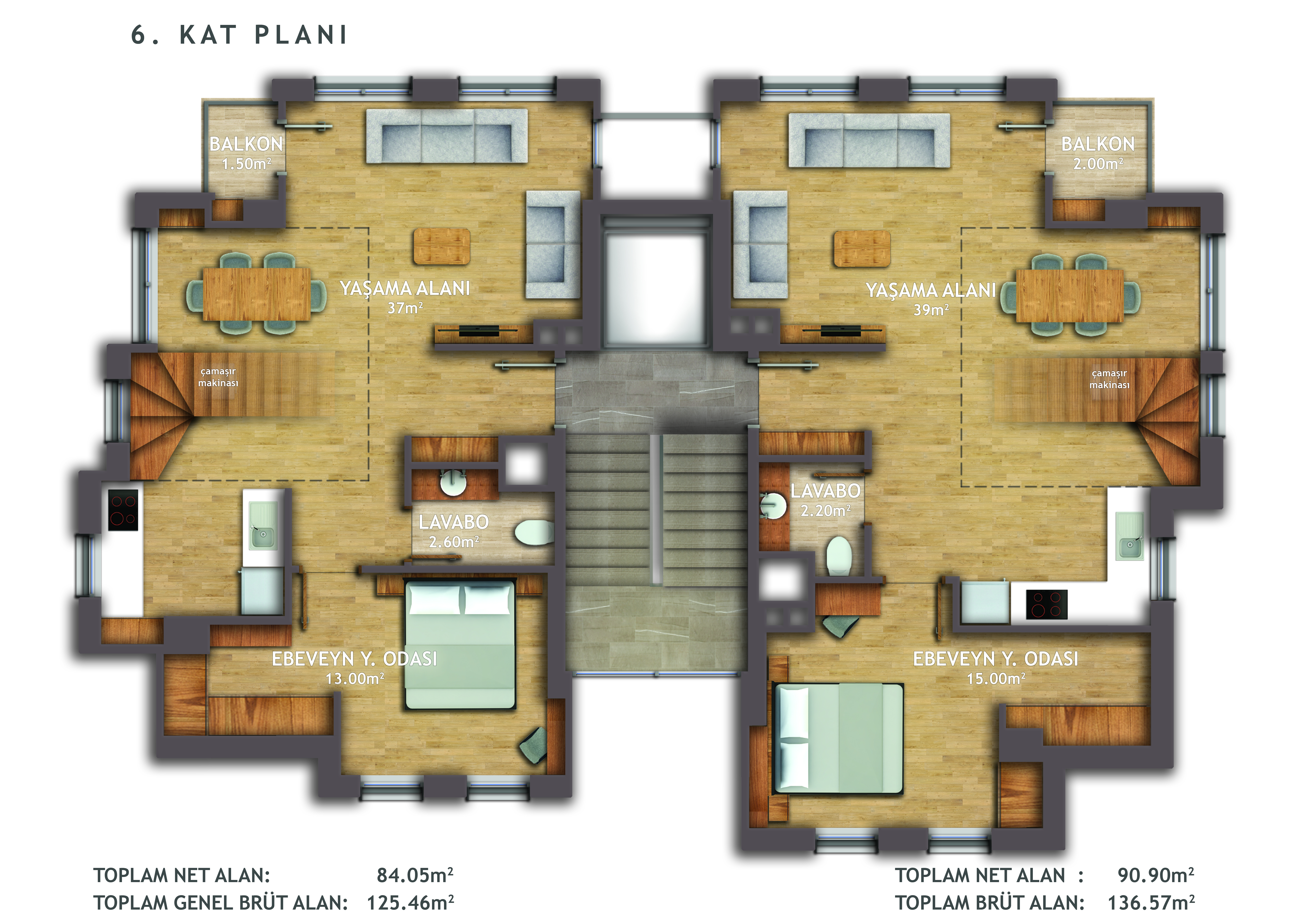 – Daire Tipi : 2+1 – 3+1/ 6+2 DUBLEX- Net 260 m2(Deniz Manzaralı+Teras )