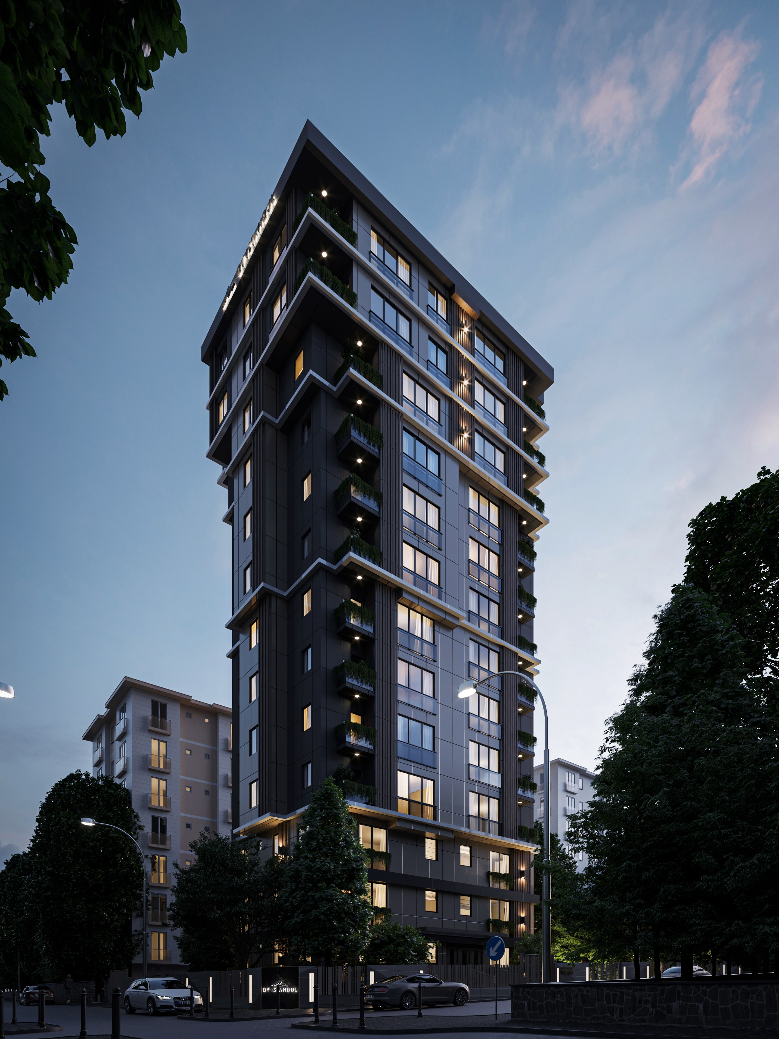 – Proje İnşaat Alanı : 3400m2 (22 konut 2 ticari )