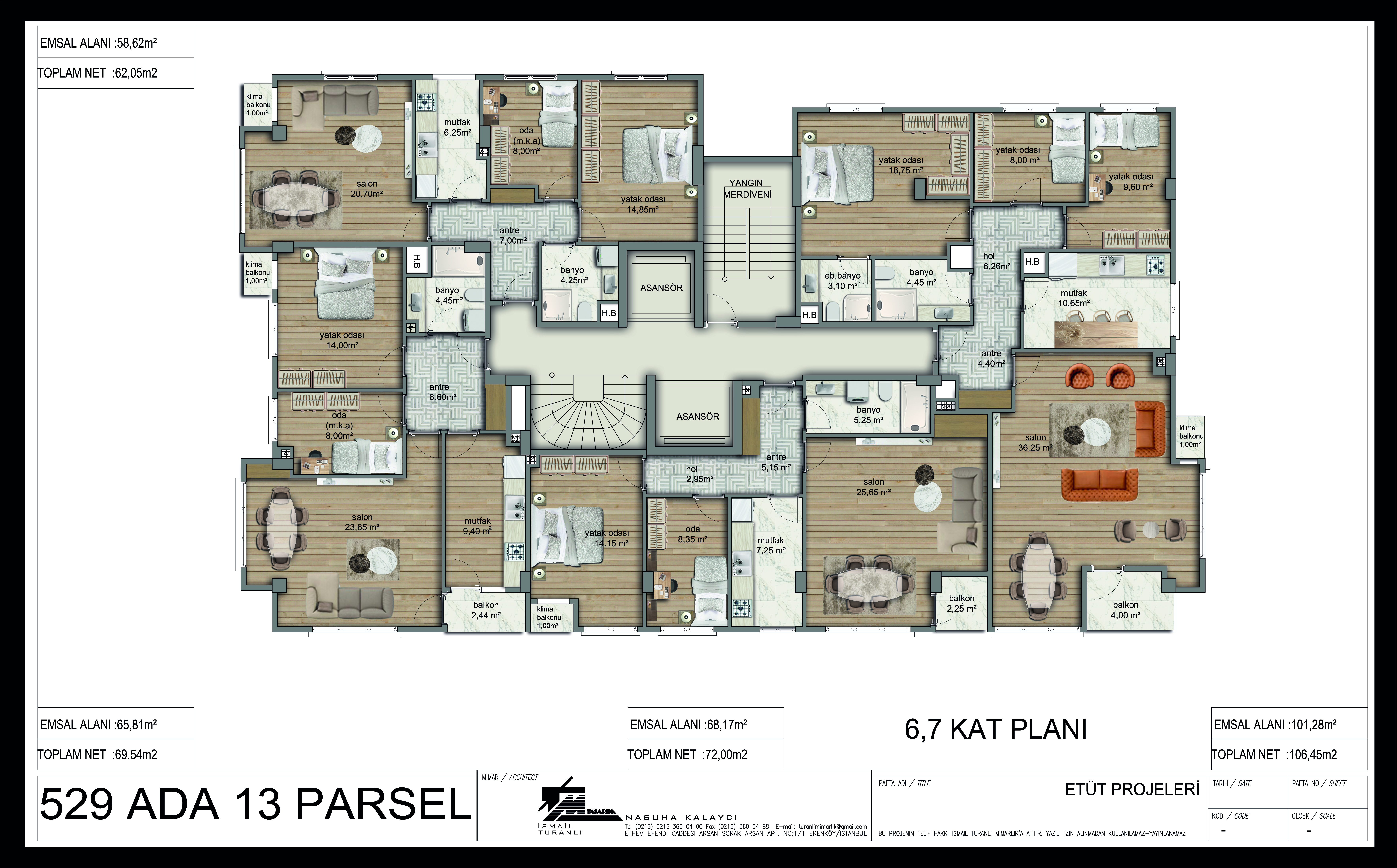 – Daire Sayısı : 32 daire – 9 ticari alan