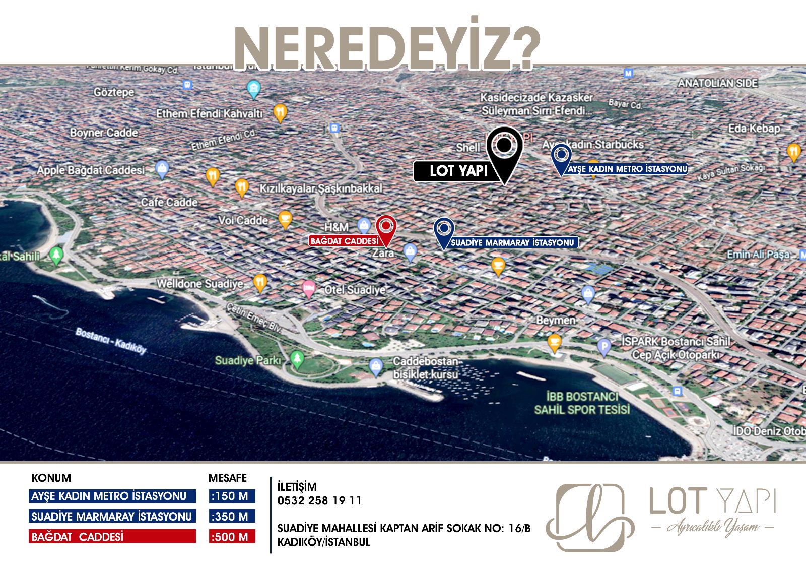 Suadiye Türker Apartmanı projemiz İstanbul’un en seçkin konumlarından birinde, sizler için kaliteli bir yaşam alanı temin ediyor. Şehrin nabzının attığı yerlerden biri olan Suadiye’de modern hayatın tüm çekiciliğini bulmak çok kolay. Bağdat Caddesi’ne sadece beş dakikalık mesafedeyiz. Bunun yanında denize ve kilometrelerce uzunluktaki sahile olan yakınlığıyla sizler için doğal yaşamın da kapısını aralıyoruz.
