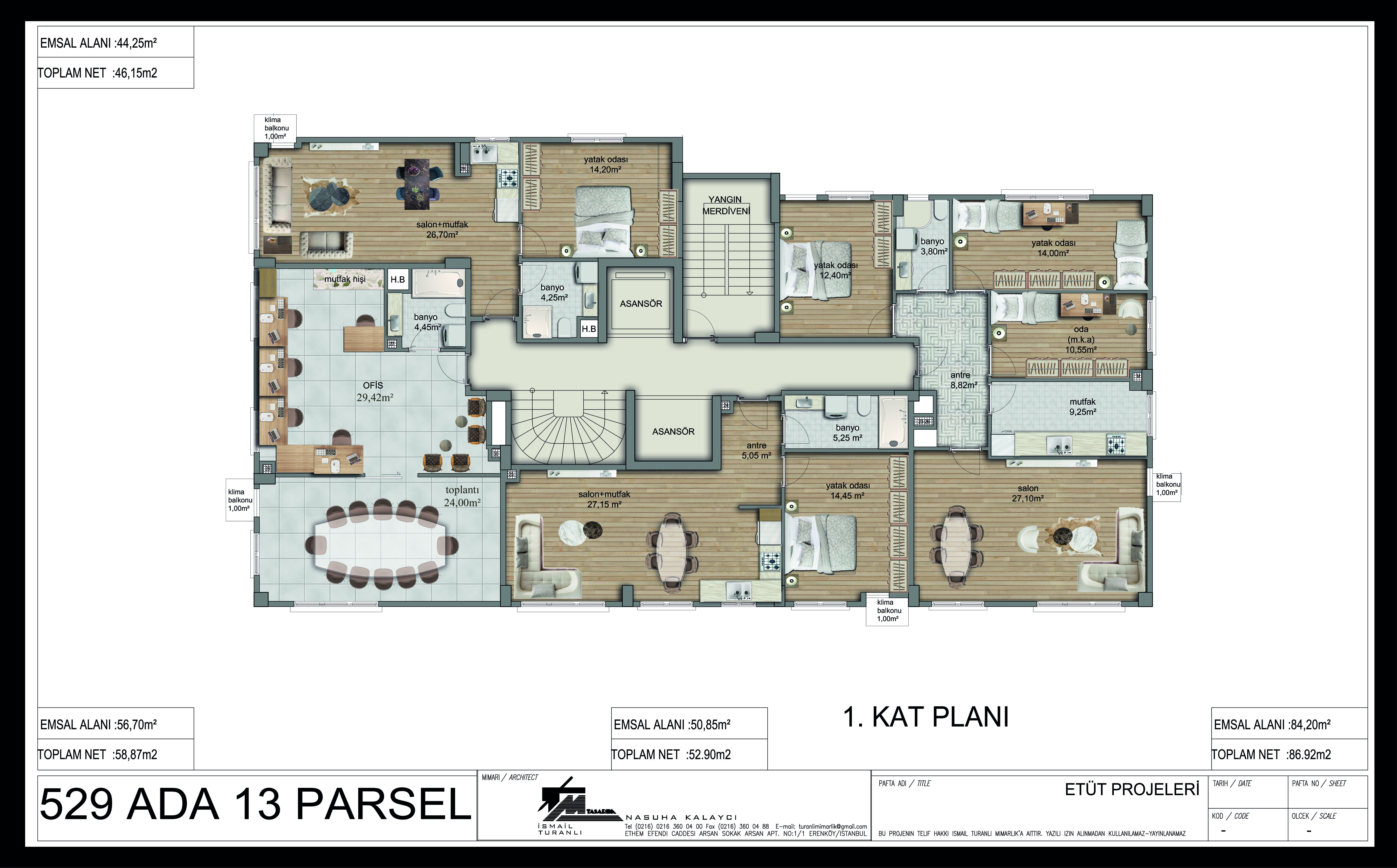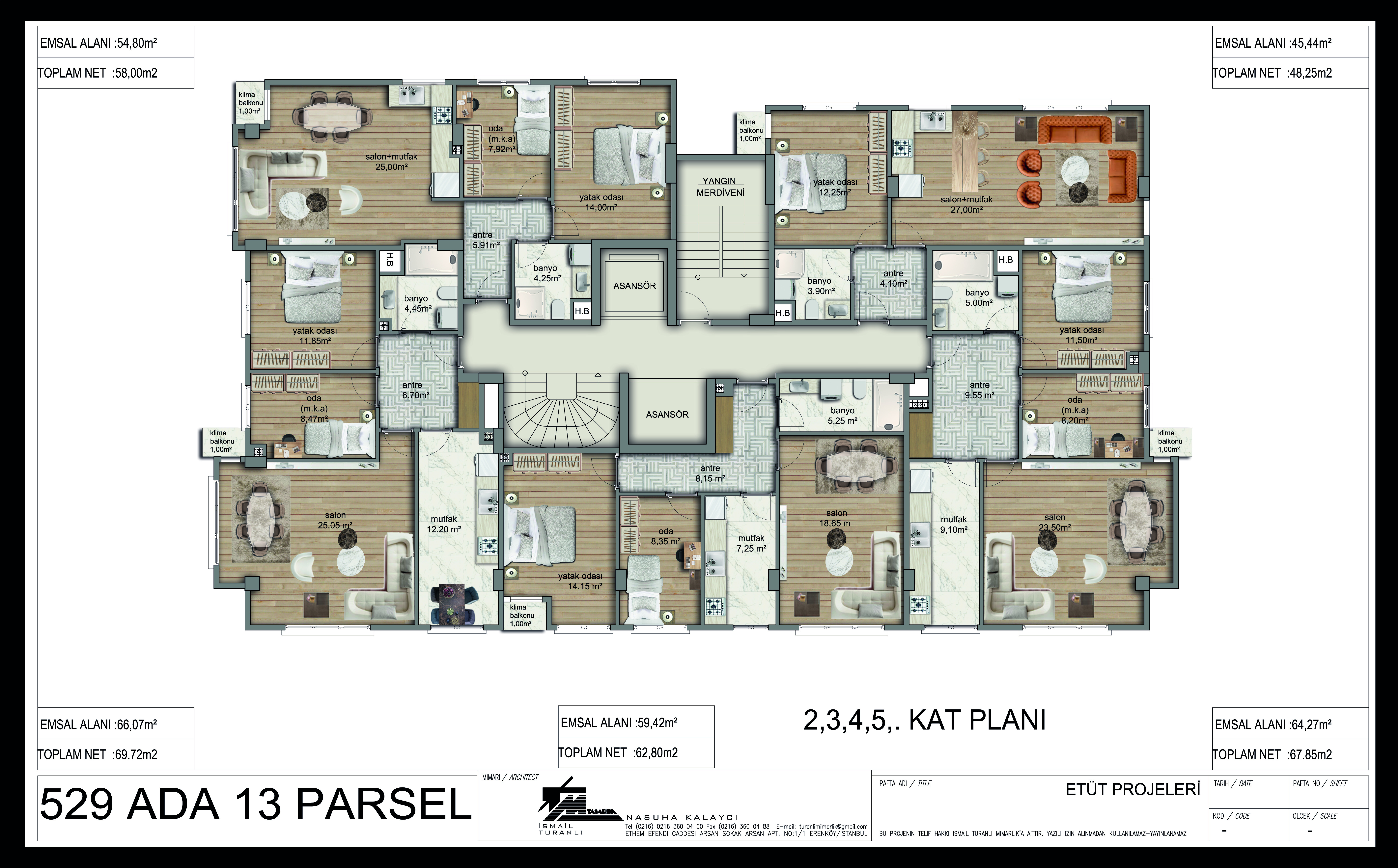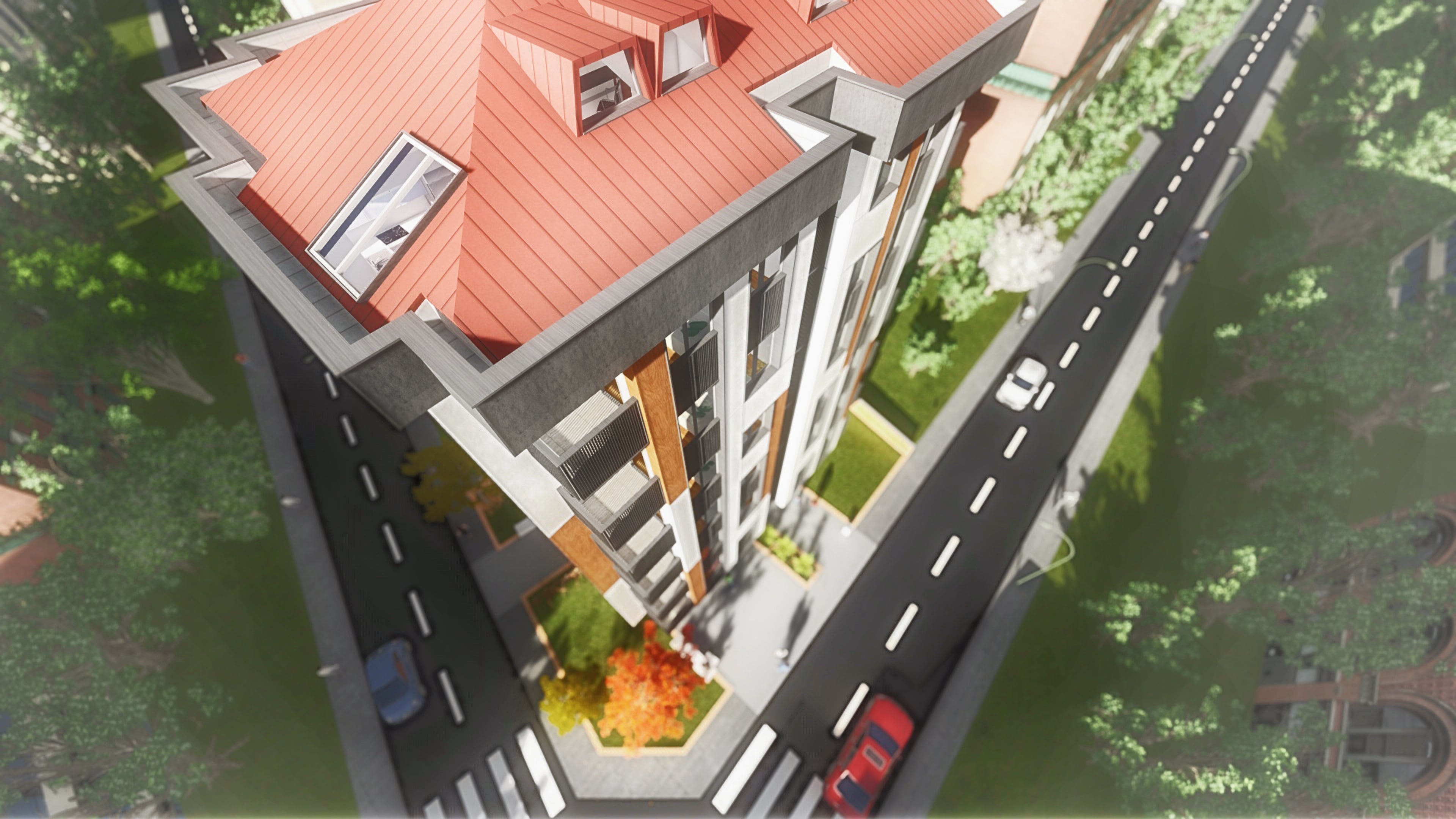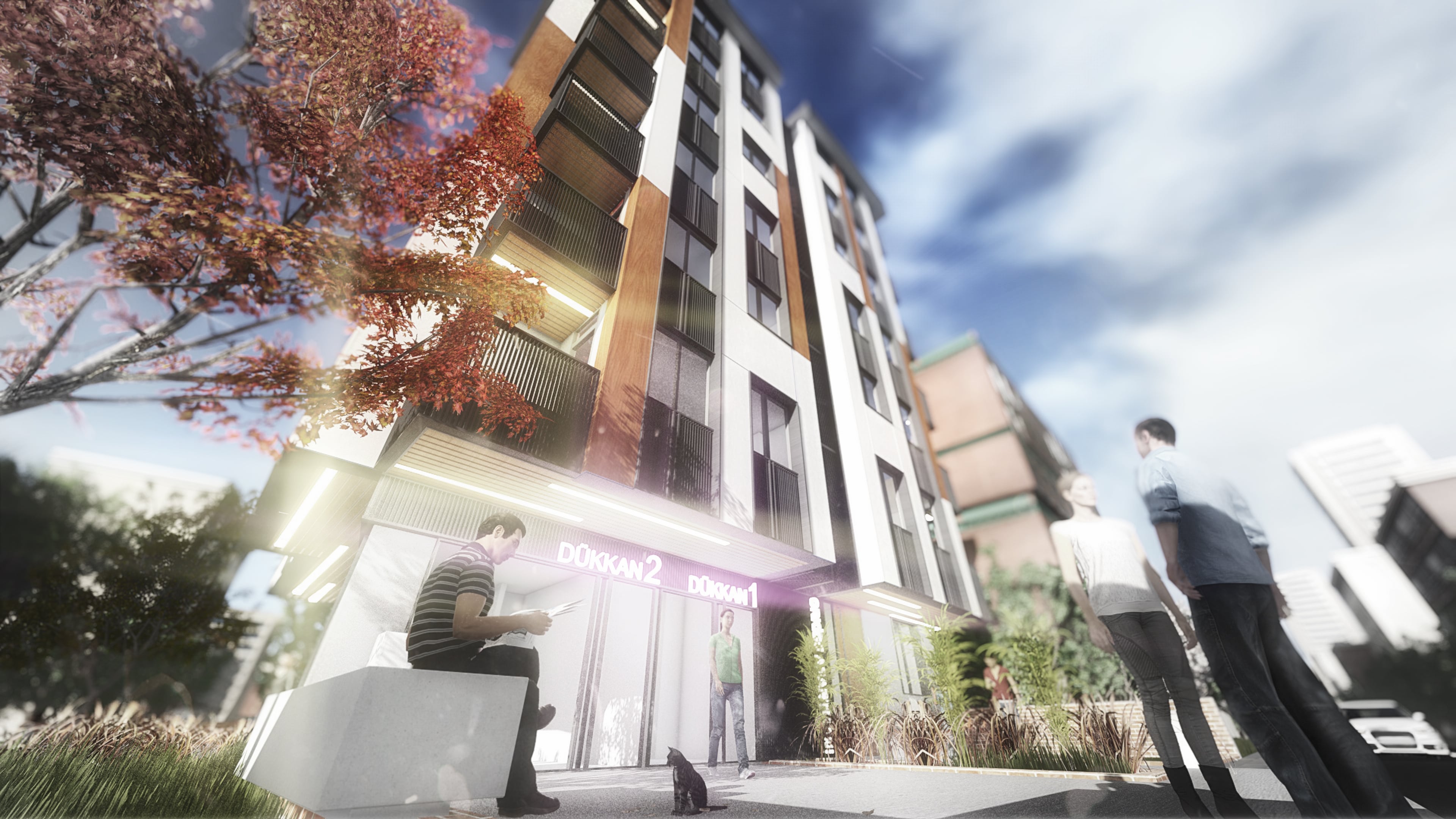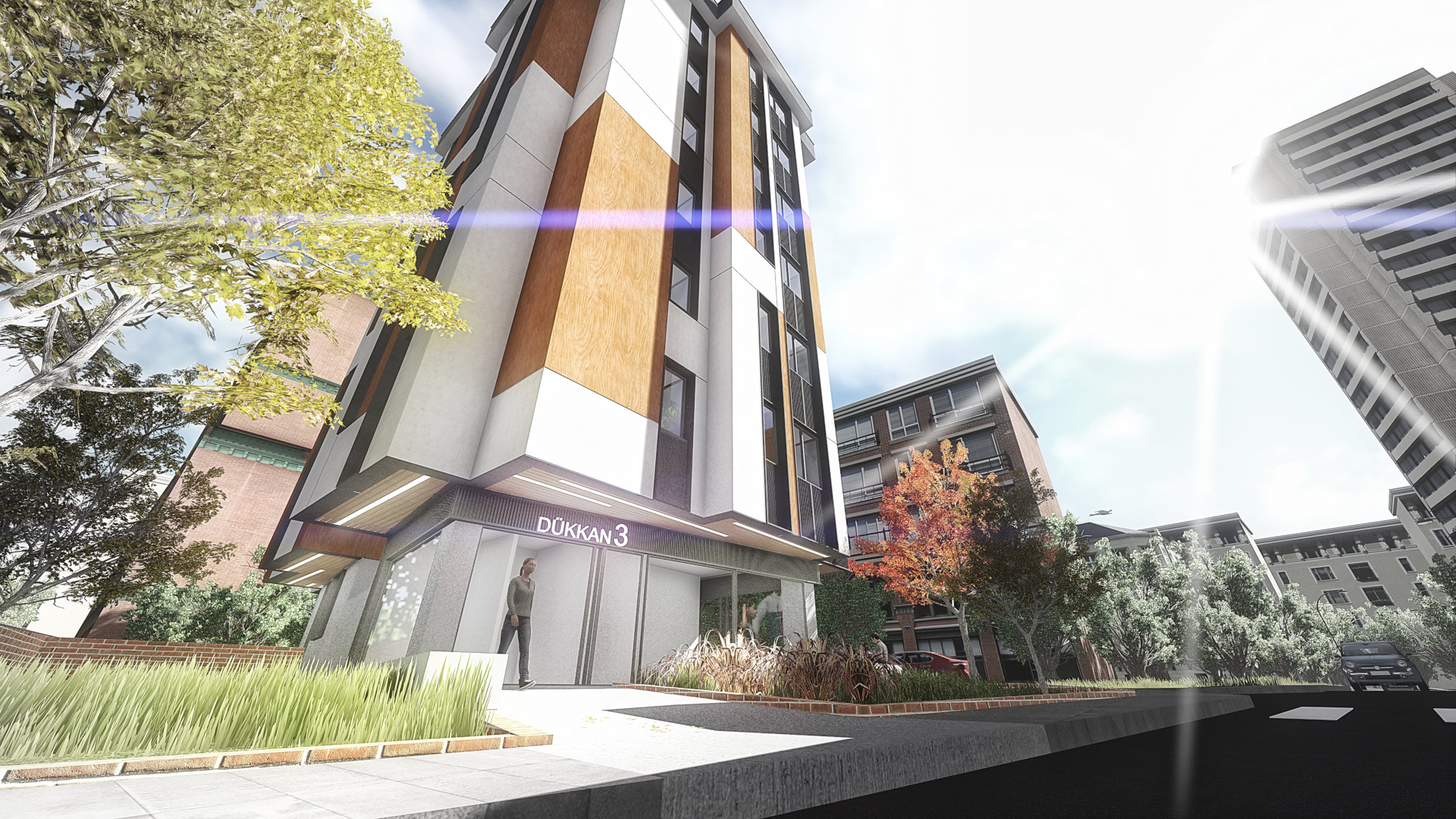 – Proje İnşaat Alanı : 3400m2 (22 konut 2 ticari )