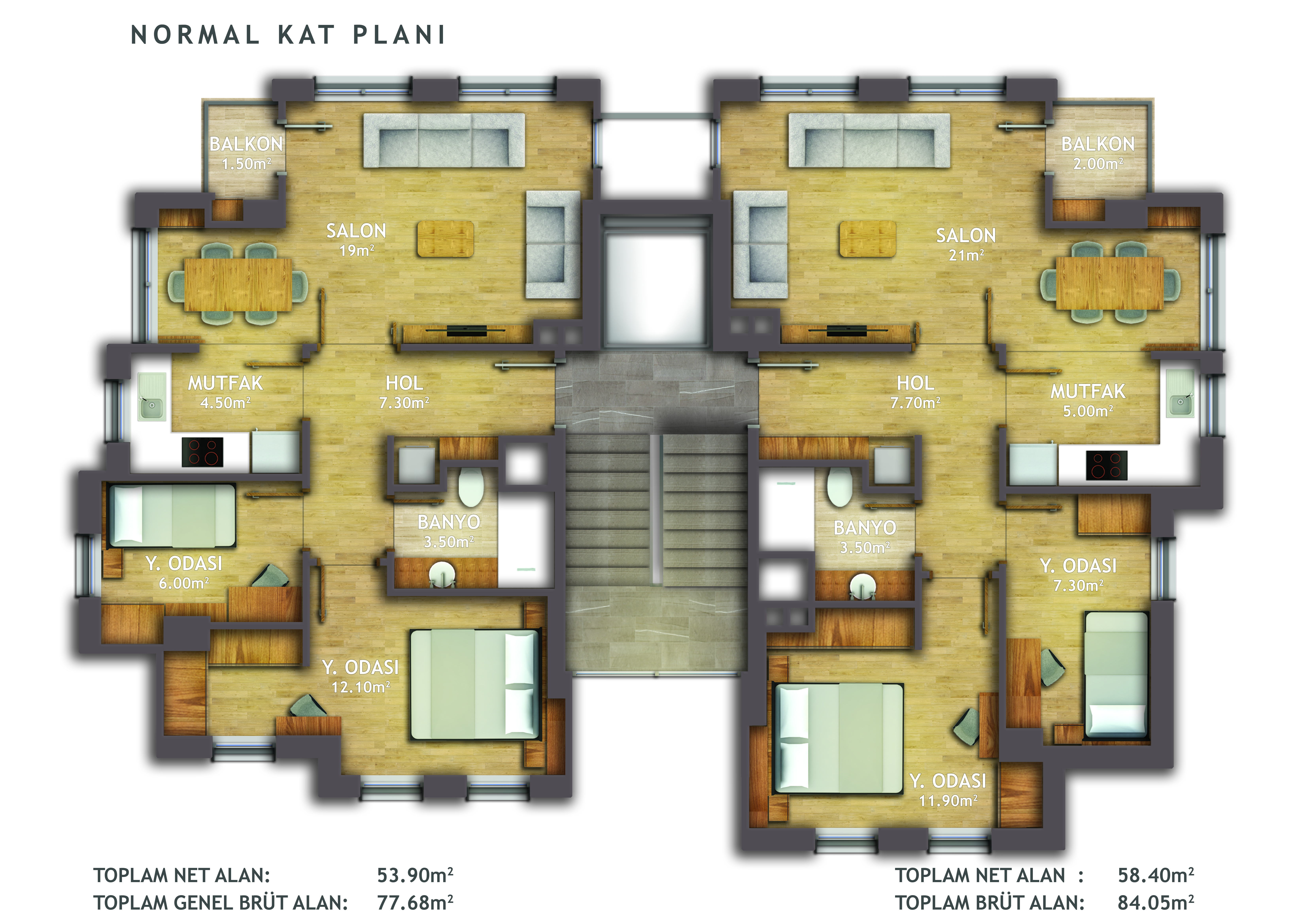 – Daire Tipi : 1+1 – 2+1 – 3+1 – 4+1